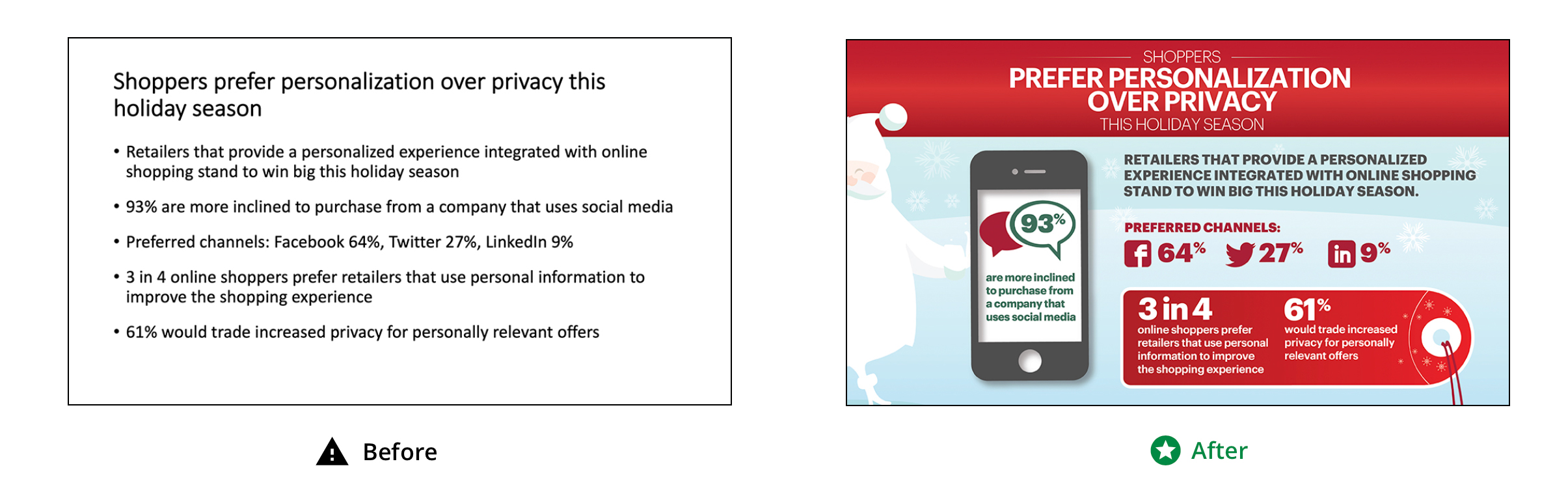 Using your idea, sketch or conversation, slides will be custom designed by using infographics, color, imagery and typography.